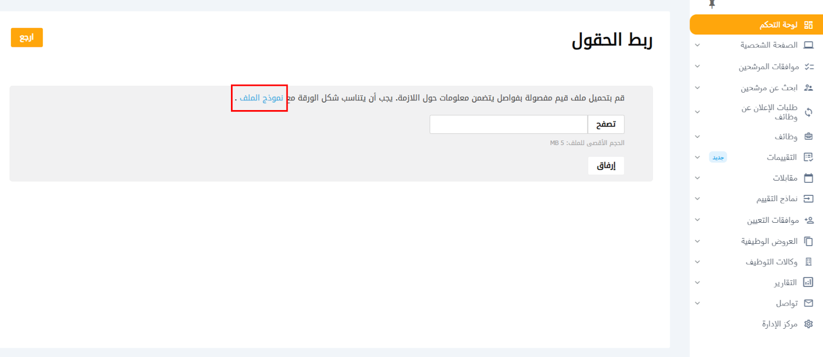 بعد تحميل ملف CSV، يجب على صاحب العمل مطابقة القيم في ملف CSV مع حقول النظام.