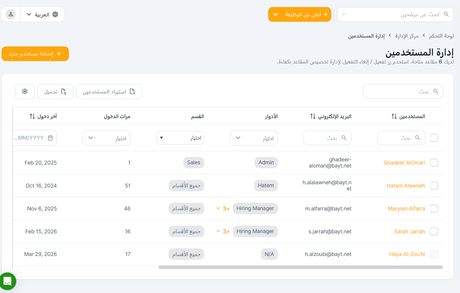قم بإنشاء حسابات مستخدمين لأعضاء مؤسستك الآخرين والسماح لهم بنشر الشواغر الوظيفية والبحث في السير الذاتية.