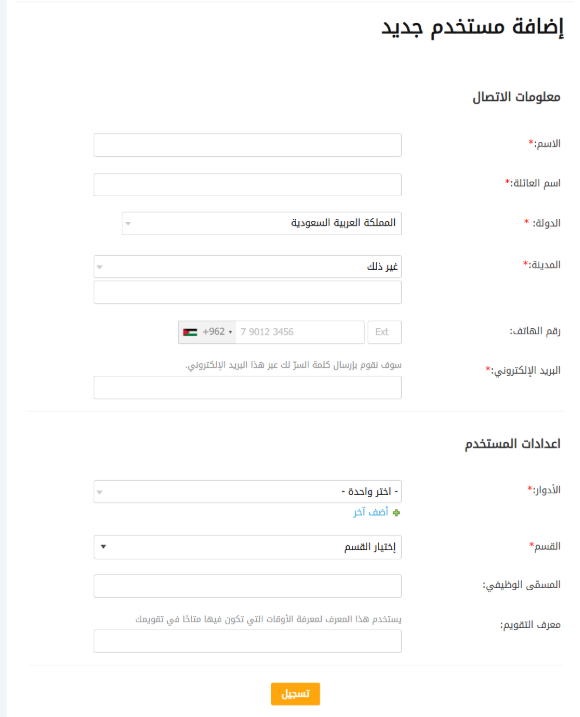 - الإضافة اليدوية - عن طريق النقر على زر "إضافة مستخدم جديد" (Add a New User)، ويتطلب هذا ملء التفاصيل أدناه المدرجة في الأقسام: