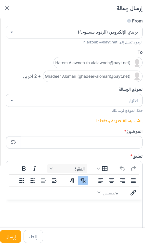 - حدد المستلمين الذين يجب أن يتلقوا الإشعار.
