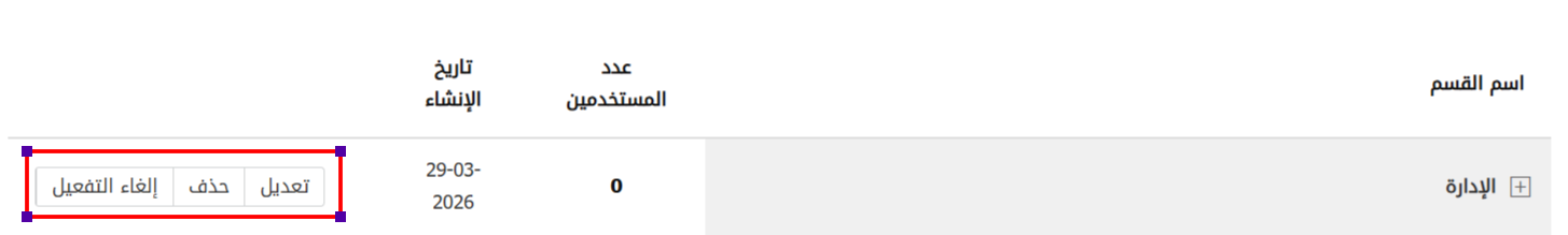 - إلغاء التفعيل (Deactivate) - سيؤدي هذا الخيار إلى إخفاء القسم من قوائم الأقسام في جميع أنحاء الموقع.