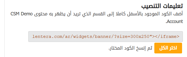 حدد الرمز الذي تم إنشاؤه والصق إطار iframe حيث تحتاج إلى استخدامه.