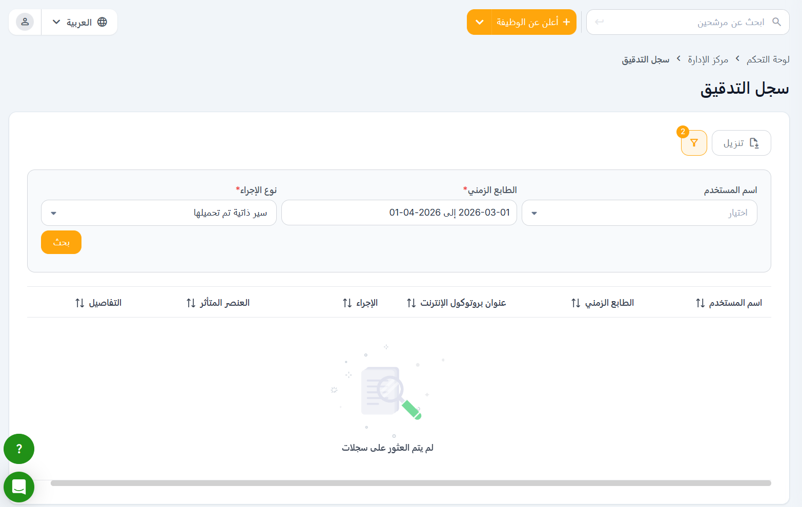 تتبع جميع السير الذاتية التي تم تنزيلها بواسطة أصحاب العمل على بوابة التوظيف الخاصة بك في فترة محددة على صفحة سجل التدقيق.