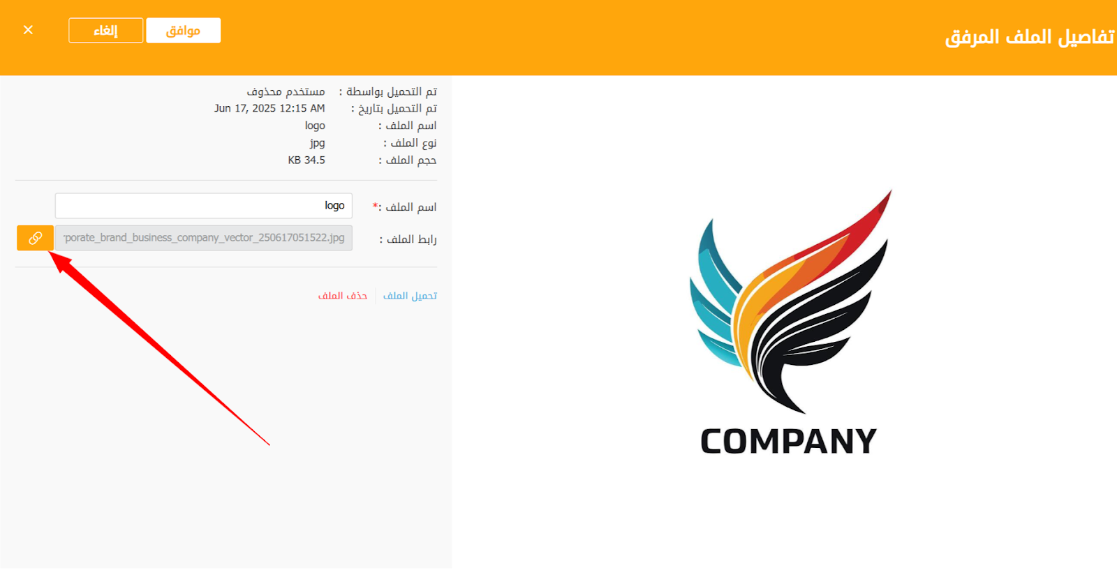 إذا كنت ترغب في تحميل مستند، فانقر على تحميل (Upload) وحدد الملف. بعد التحميل، يمكنك النقر على المستند من أجل عرض تفاصيله و نسخ رابطه (URL) لاستخدامه داخل النظام.
