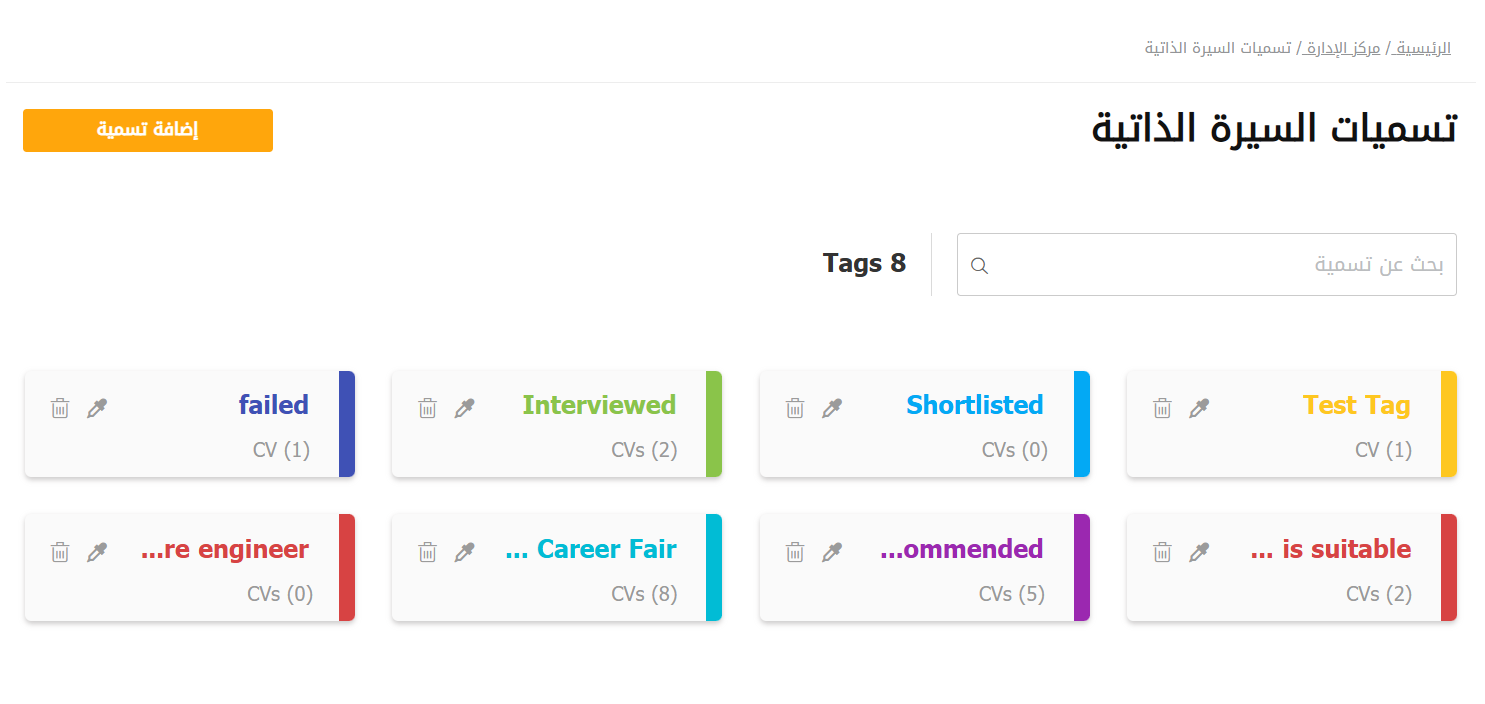 يمكنك أيضًا حذف العلامات، ولكن عليك أولاً تأكيد إزالة العلامة من جميع السير الذاتية أيضًا.