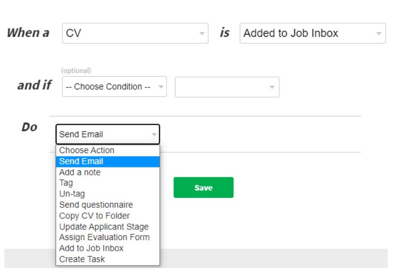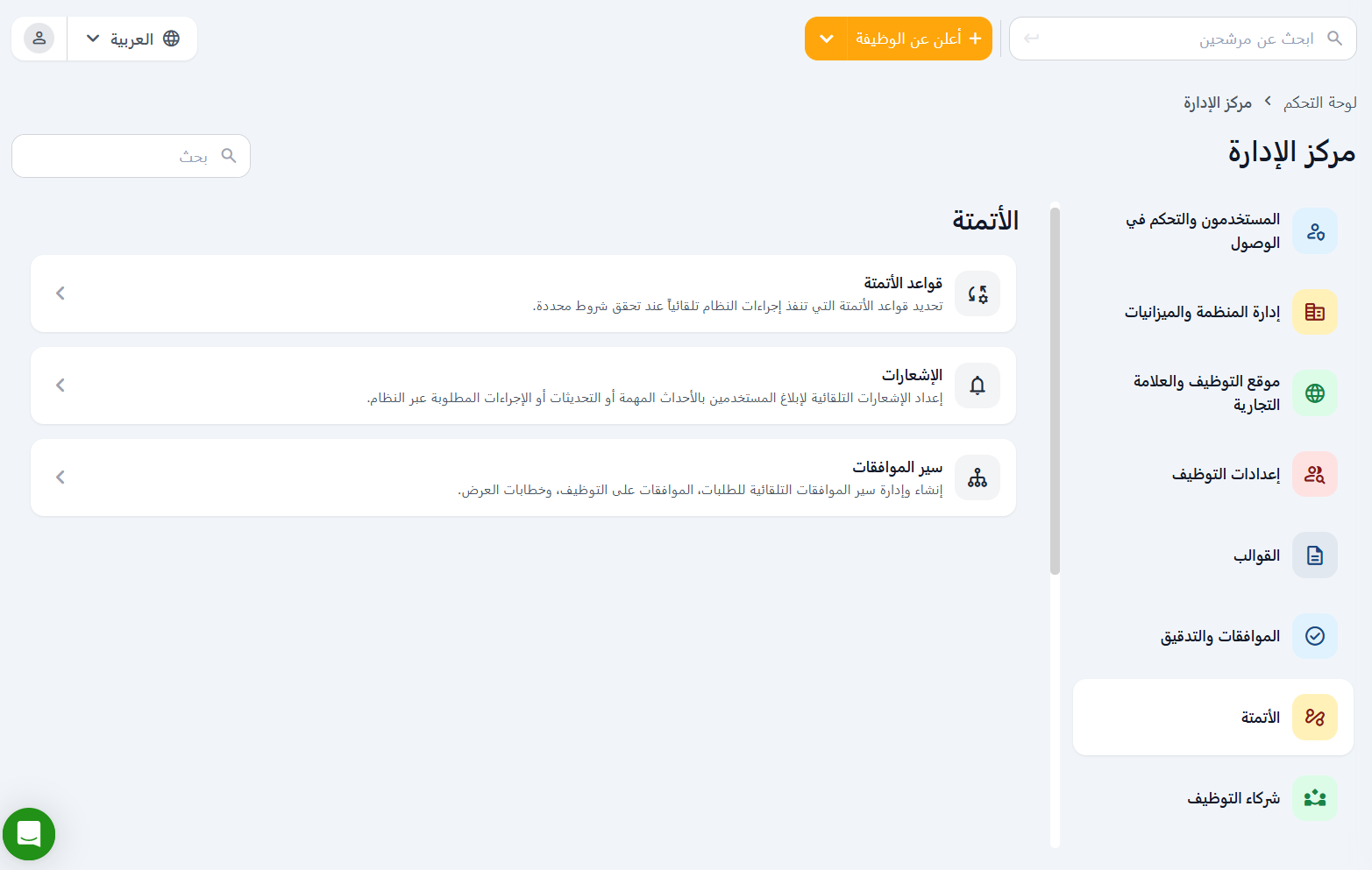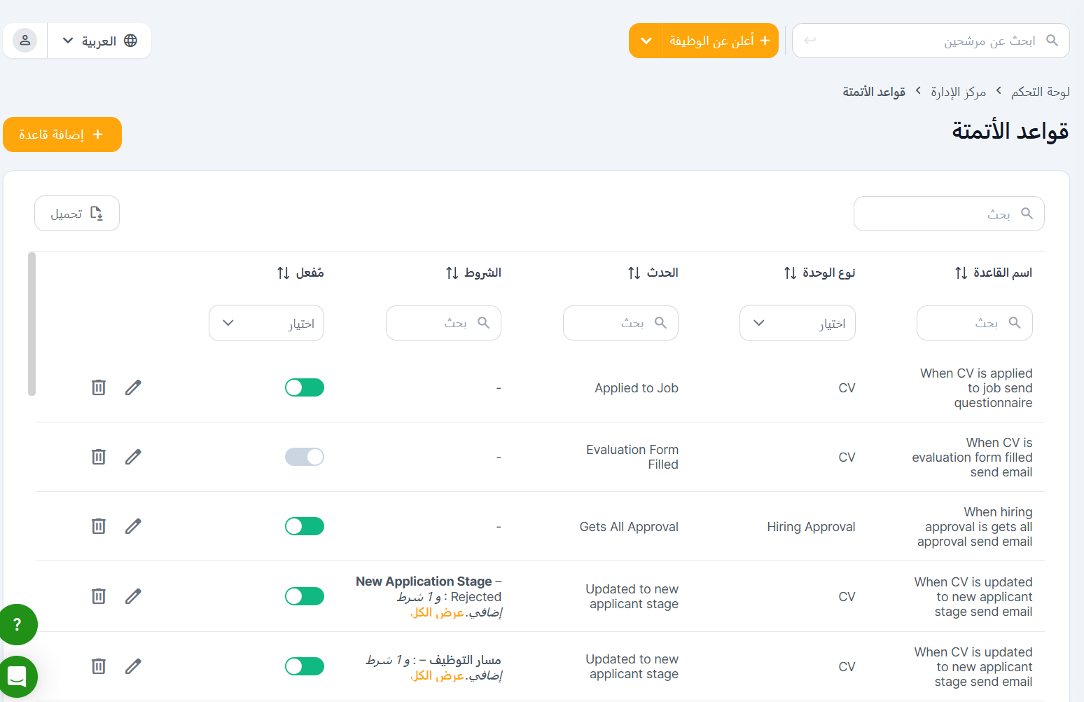 أنشئ قواعد مؤتمتة لكل شيء بدءًا من السير الذاتية وصولاً إلى الإعلانات الوظيفية بناءً على الإعدادات والشروط التي تختارها. يمكنك استخدام القواعد المؤتمتة لتشغيل رسائل البريد الإلكتروني، دون اتخاذ أي إجراء آخر، عند استيفاء شروط محددة.