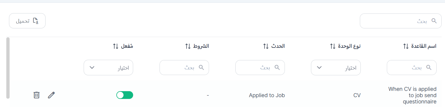 يمكنك تفعيل / إلغاء تفعيل القاعدة، أو تعديلها، أو حذفها.