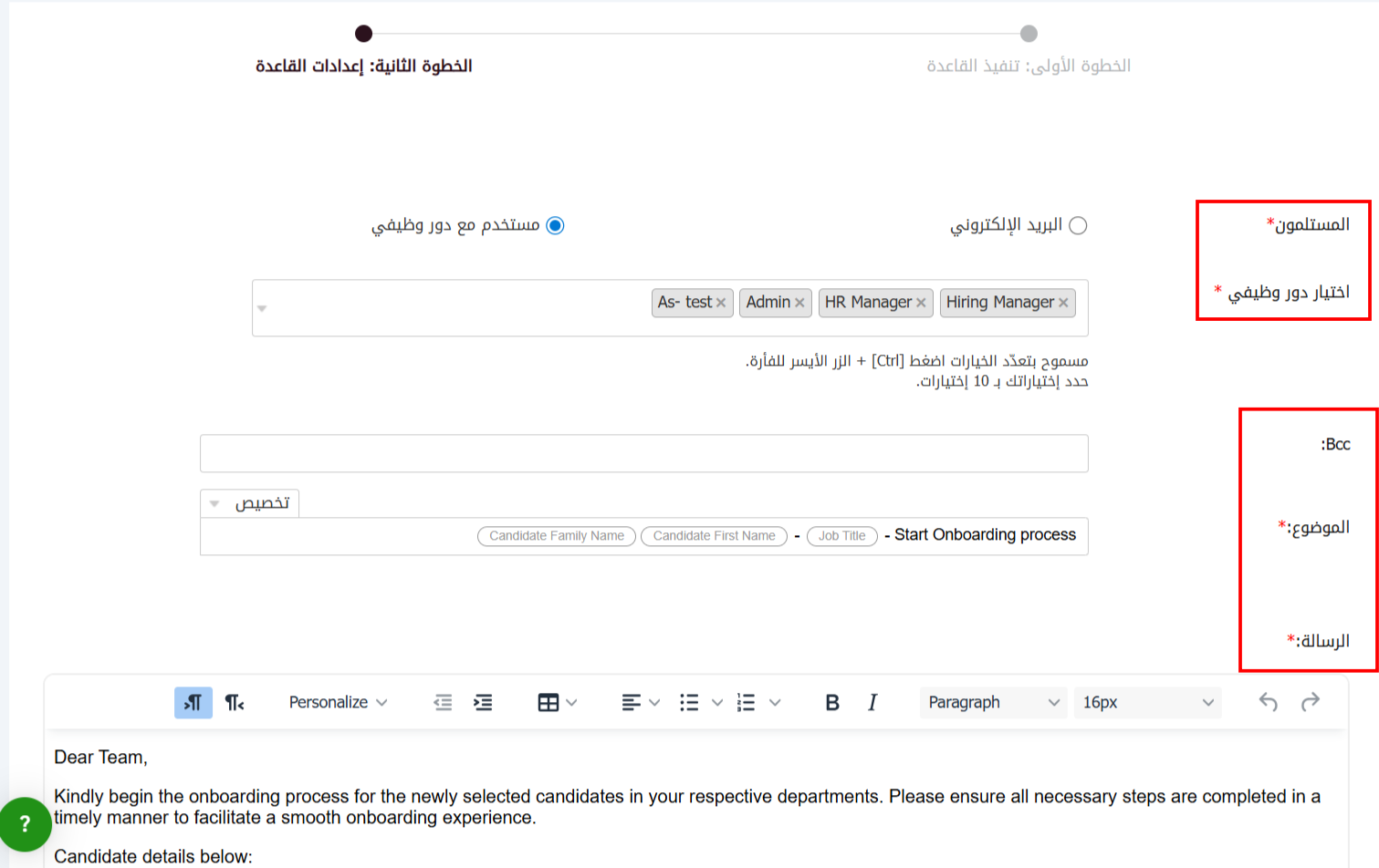 - الاسم - اسم المرحلة في عملية التوظيف الخاصة بك