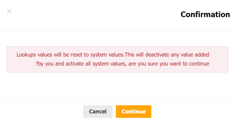 عند إعادة تعيين القيم، تحتاج إلى تأكيد إلغاء تفعيل أي قيمة أضفتها وتفعيل جميع قيم النظام.