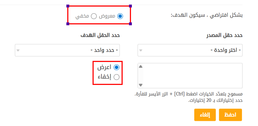 في الصورة أعلاه، سيتم عرض حقل الهدف الافتراضي ، وإذا كان خيار حقل المصدر المحدد هو كما تم اختياره فسيتم إخفاء حقل الهدف.