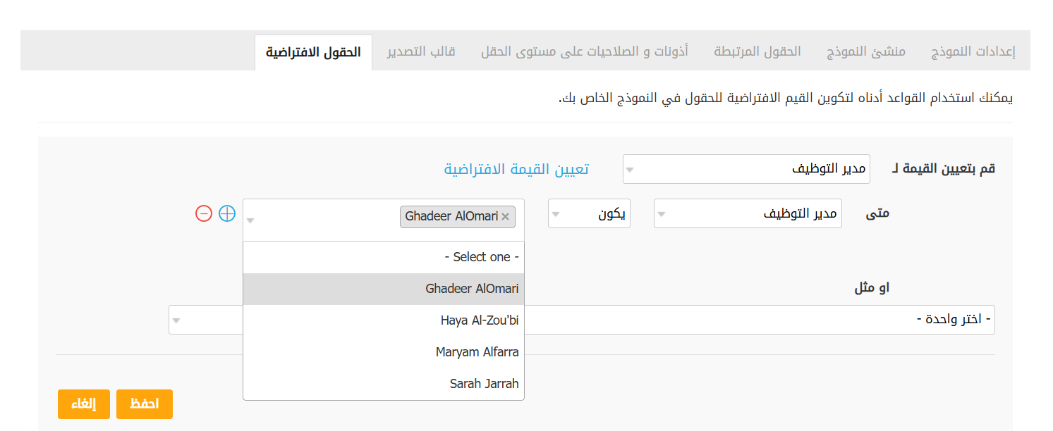 يمكنك استخدام قواعد متعددة لتكوين القيم الافتراضية للحقول في نموذجك.