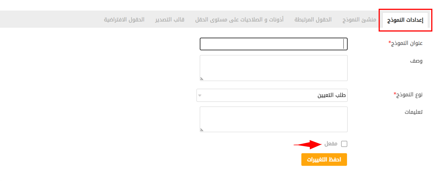 - اختر ما إذا كنت ترغب في تفعيل النموذج أم لا.