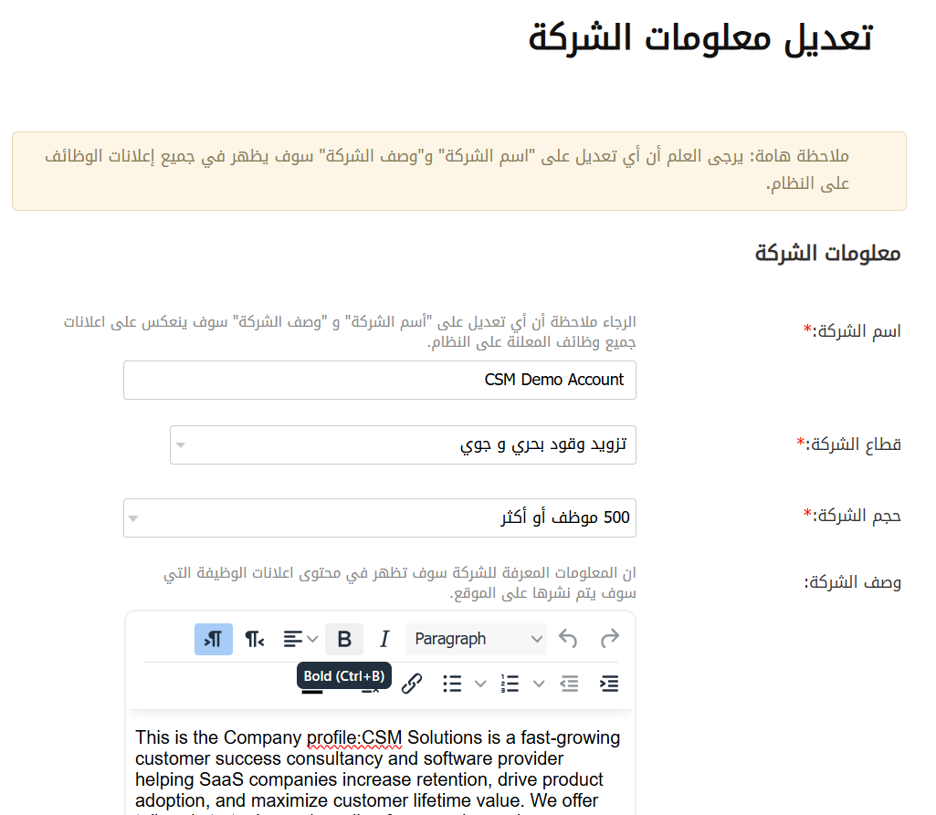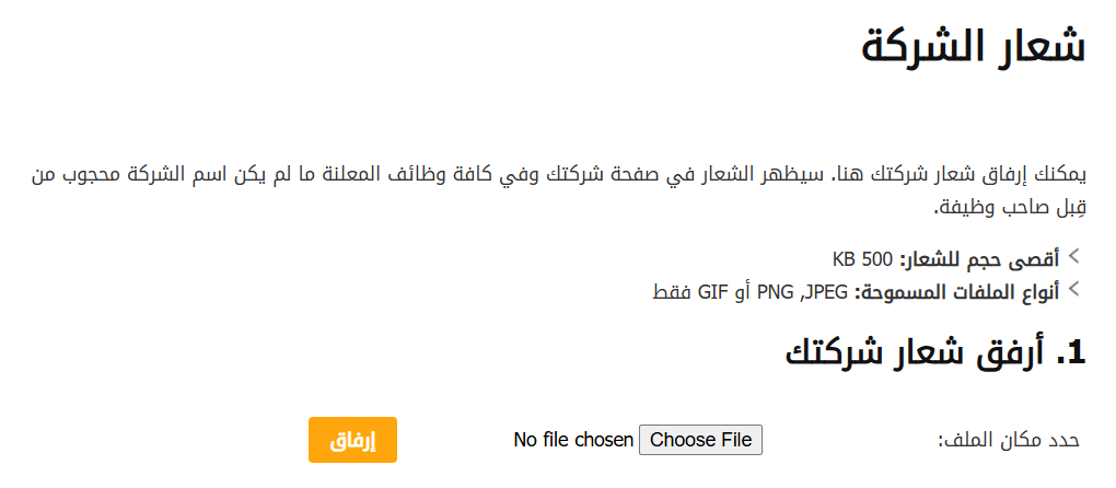 شعار الشركة (Company Logo): هو رمز لهوية شركتك. سيساعد تحميل الشعار في تكوين الانطباع الأول للمتقدمين عن الشركة.