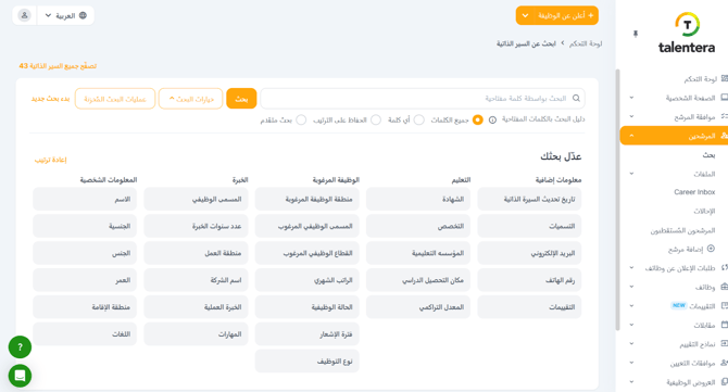 يسمح لك قسم التعليم بتصفية المرشحين بناءً على خلفيتهم الأكاديمية. يمكنك تنقيح عمليات البحث حسب الدرجة العلمية، التخصص، المؤسسة التعليمية، المعدل التراكمي (GPA)، أو موقع التعليم. يساعدك هذا في تحديد المرشحين الذين تتوافق مؤهلاتهم التعليمية مع متطلبات وظائفك الشاغرة.
