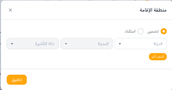 - فلتر منطقة الإقامة (Residence Location Filter)