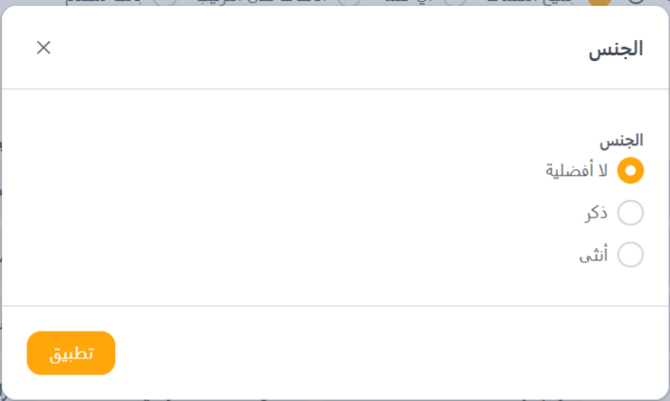 3- فلتر الجنس (Gender Filter): (خيارات ذكر وأنثى)