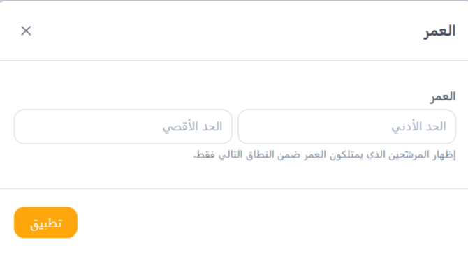 4- فلتر العمر (Age Filter): (قوائم الحد الأدنى والحد الأقصى)