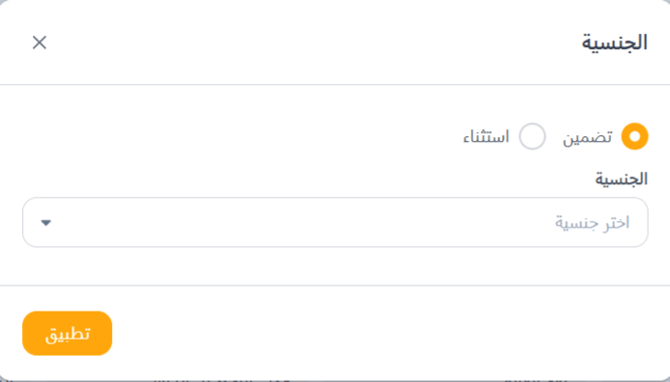 - تضمين (Include): يسترد النتائج التي تتطابق مع الجنسيات المحددة.