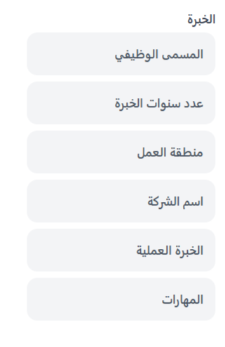 - حقل خبرة العمل.
