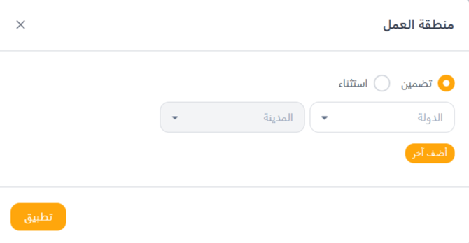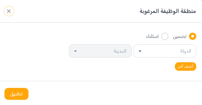 - استثناء(Exclude): يزيل المرشحين من النتائج الموجودين في البلد أو المدينة المحددة.
