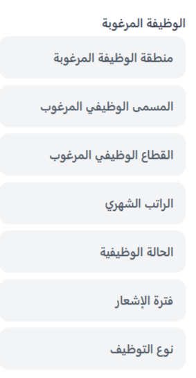 عند إدخال المسمى الوظيفي المستهدف، يمكنك الاختيار من الخيارات التالية: