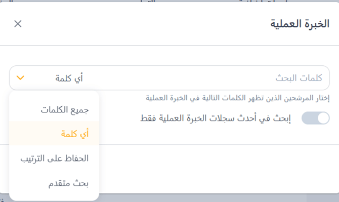 - مفتاح "البحث ضمن خبرة العمل الأخير فقط".
