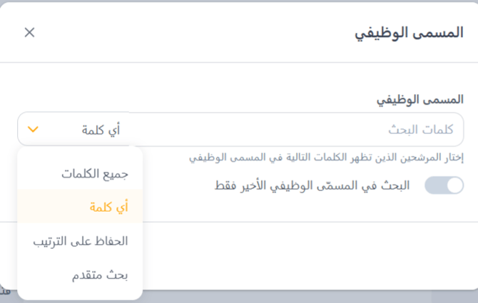 - مفتاح "البحث ضمن المسمى الوظيفي الأخير فقط".