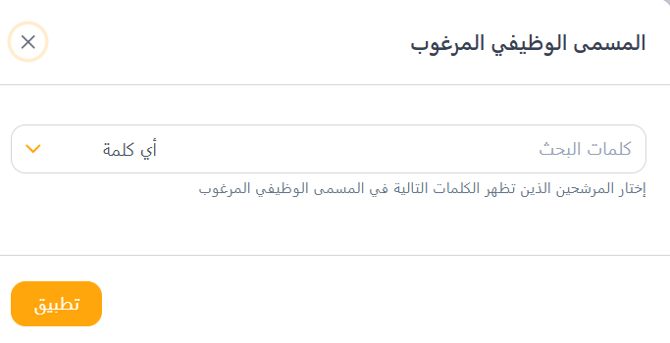 يسمح لك فلتر المسمى الوظيفي المرغوب بتنقيح عمليات البحث عن المرشحين بناءً على مسمياتهم الوظيفية المفضلة. يساعدك هذا في تحديد المرشحين الذين تتطابق أهدافهم المهنية مع المناصب التي توظف من أجلها.