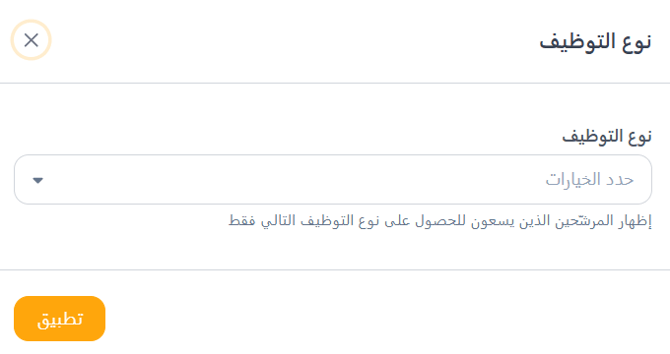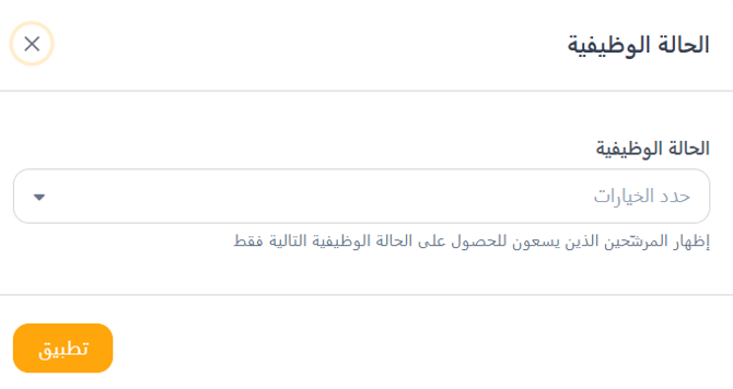 يسمح لك فلتر حالة التوظيف بتضييق نطاق المرشحين بناءً على نوع التوظيف المفضل لديهم. يضمن هذا تواصلك مع المرشحين الذين يتوافق توفرهم مع احتياجات التوظيف الخاصة بك.
