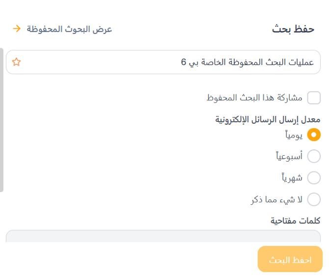 - تسمية البحث المحفوظ لسهولة التعرف عليه.