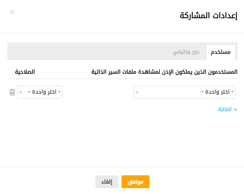 يمكنك أيضًا تحديد مستوى الوصول كما هو مدرج أدناه: