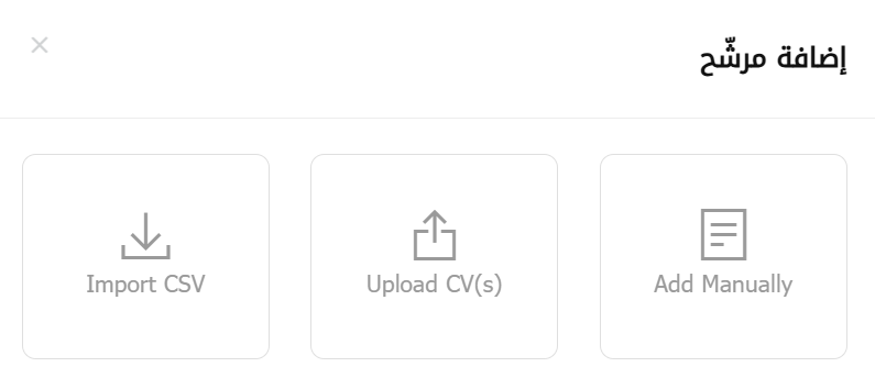 - تحميل السير الذاتية ((Upload CV(s): يسمح هذا الخيار لصاحب العمل بتحميل السير الذاتية واستيرادها إلى النظام. سيتم استخراج جميع البيانات وإضافتها إلى السيرة الذاتية.