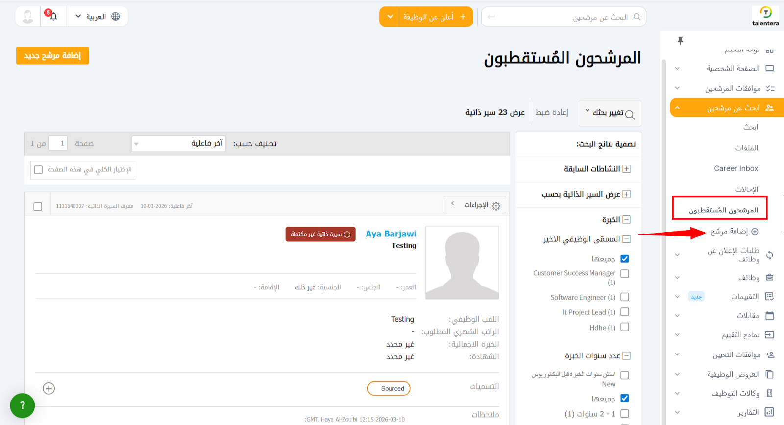 إضافة المرشحين (Adding sourced candidates)
