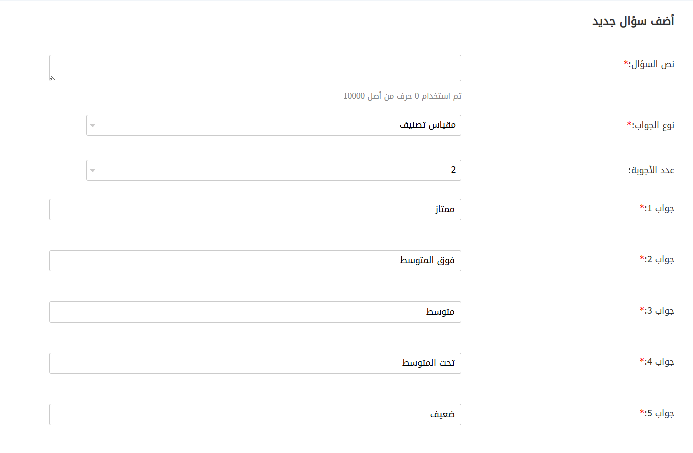 يمكنك إضافة أنواع مختلفة من الأسئلة، كما هو موضح أدناه: