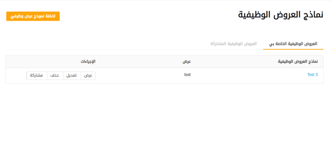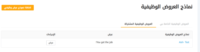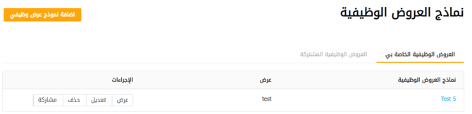 يتم إدراج جميع النماذج التي تم إنشاؤها ومشاركتها في صفحة "نماذج العروض الوظيفية".