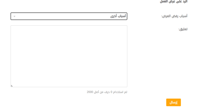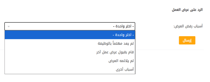 وإذا اختار خيار "أخرى"، فعليه ذكر سبب رفض العرض.