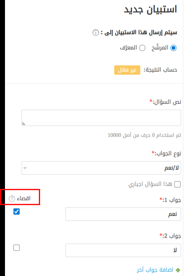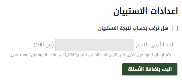 لديك أيضًا خيار استبعاد المرشح بناءً على إجابة محددة، حيث سيتم استبعاده/استبعادها بغض النظر عن النتيجة النهائية.
