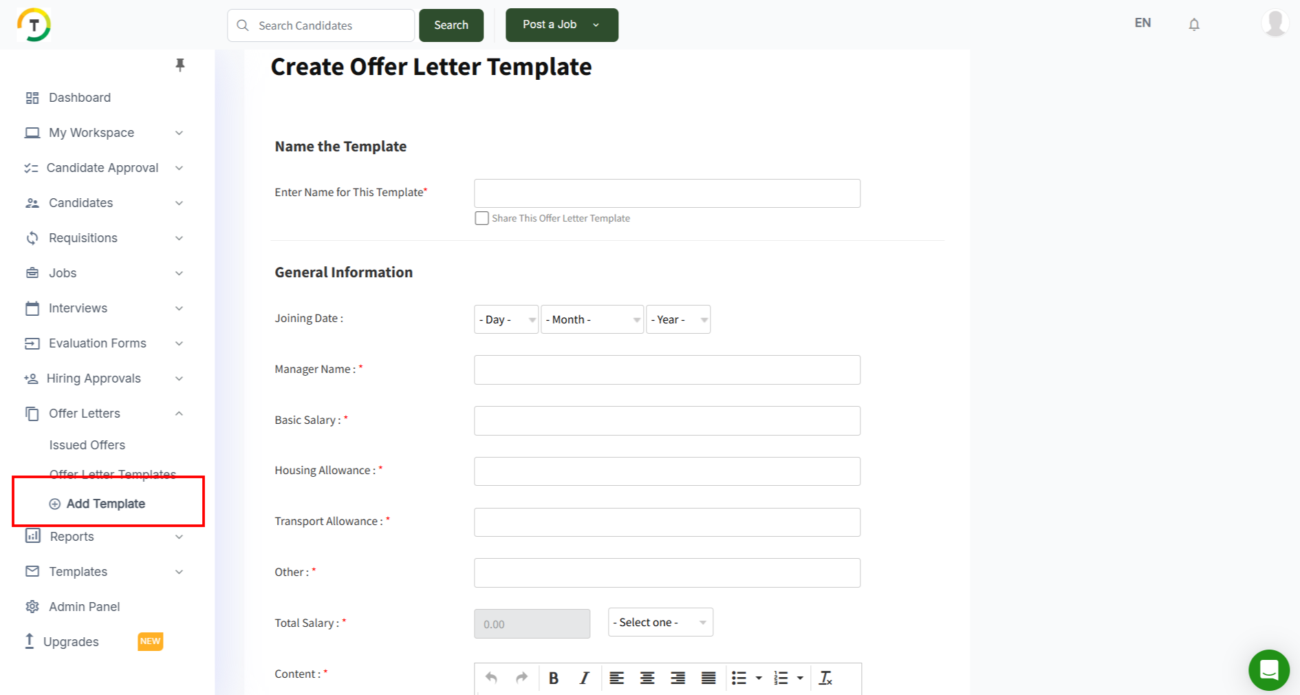 How do I create offer letter templates?