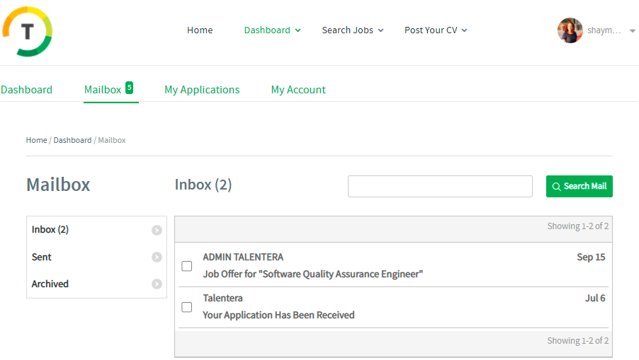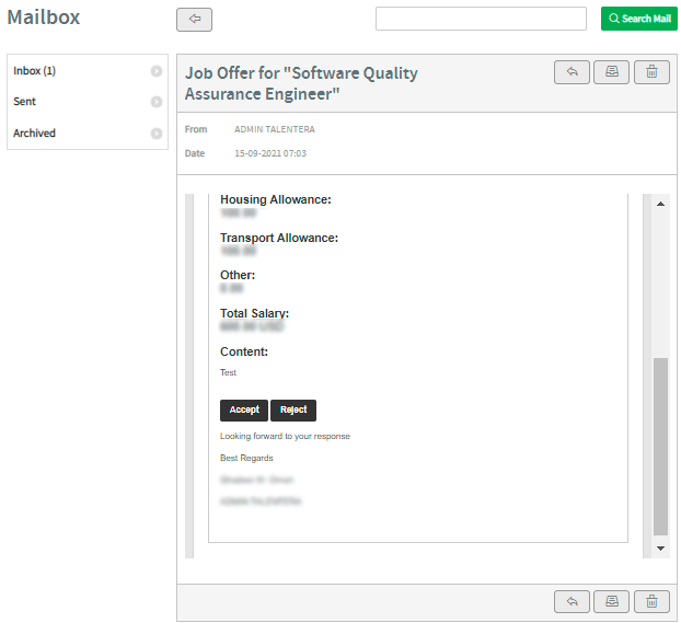 The confirmation or rejection is documented by email so that both the potential employee and the employer are clear on the decision and the details of the job.