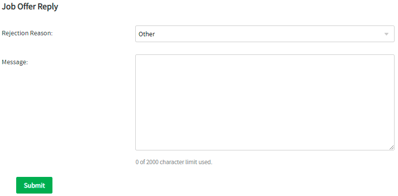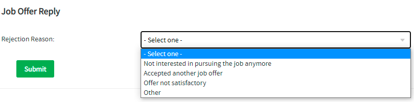 If the candidate rejects an offer, they have to select a Rejection Reason.