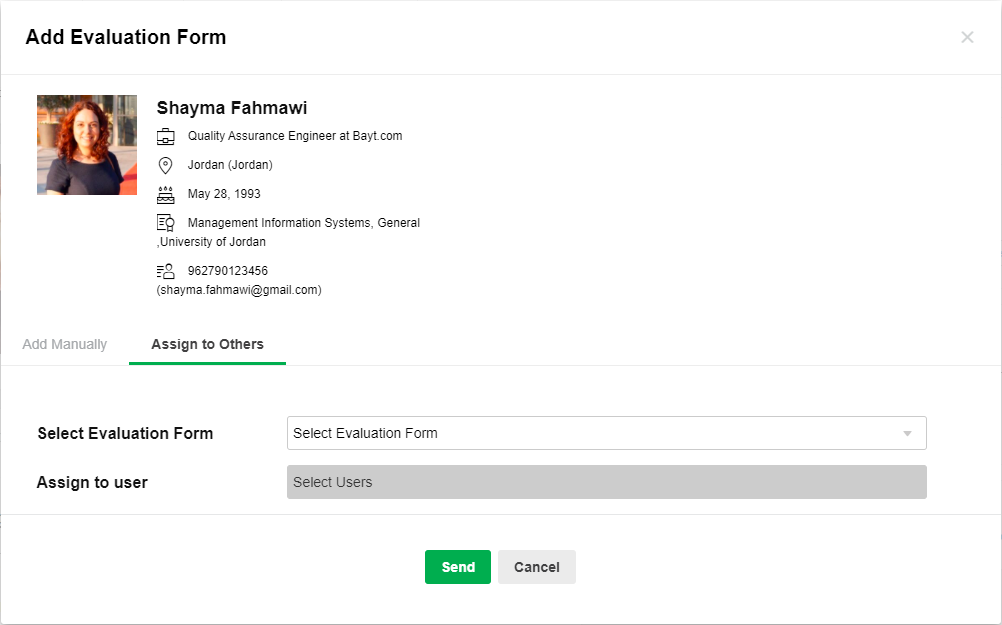 To assign a form to another recruiter, you have to fill in the desired form and the recruiter’s account.