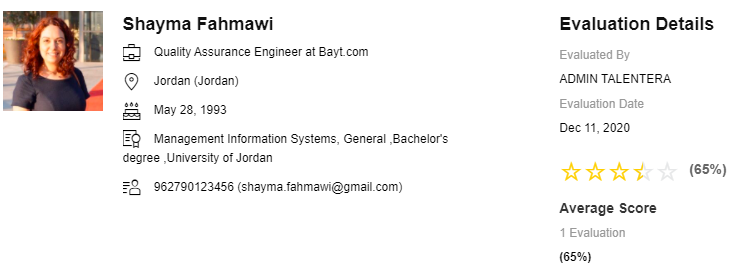 And if more than one employer evaluated the same candidate, all evaluators' details will hover on the average score.