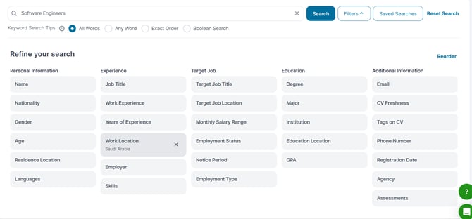 - Skills, filter by skills listed on candidate profiles.