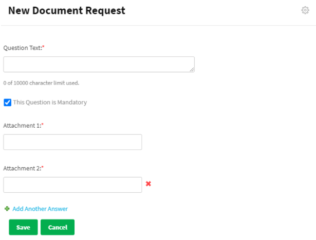 A new document request can be added by clicking on ‘’Add a new document request template’’ then click on ‘’Start Adding Attachments’’ after adding the title.