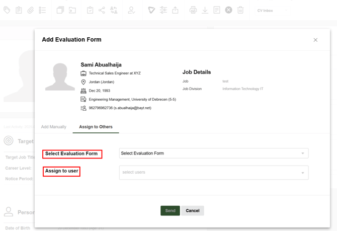 There are 2 options for assigning the evaluation forms, to either fill it manually or to assign it to another user: