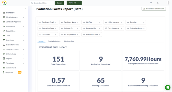 You can search the results by Candidate Email, Candidate Name, Job Title, Date Requested, Assignee Name and status, etc. (Please refer back to the reports section for further details).
