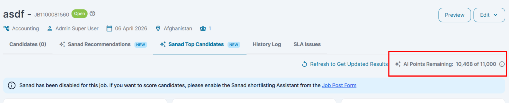 📌 Note: Viewing candidate cards in the Sanad Recommendations tab does NOT consume credits. |