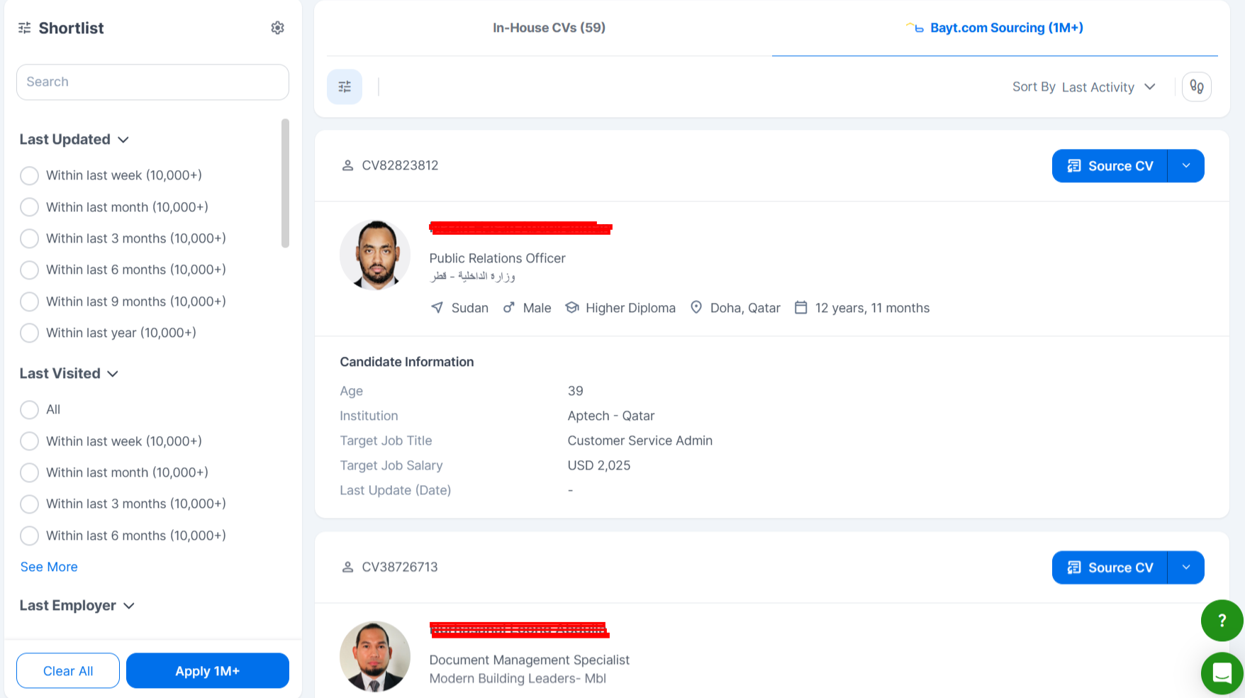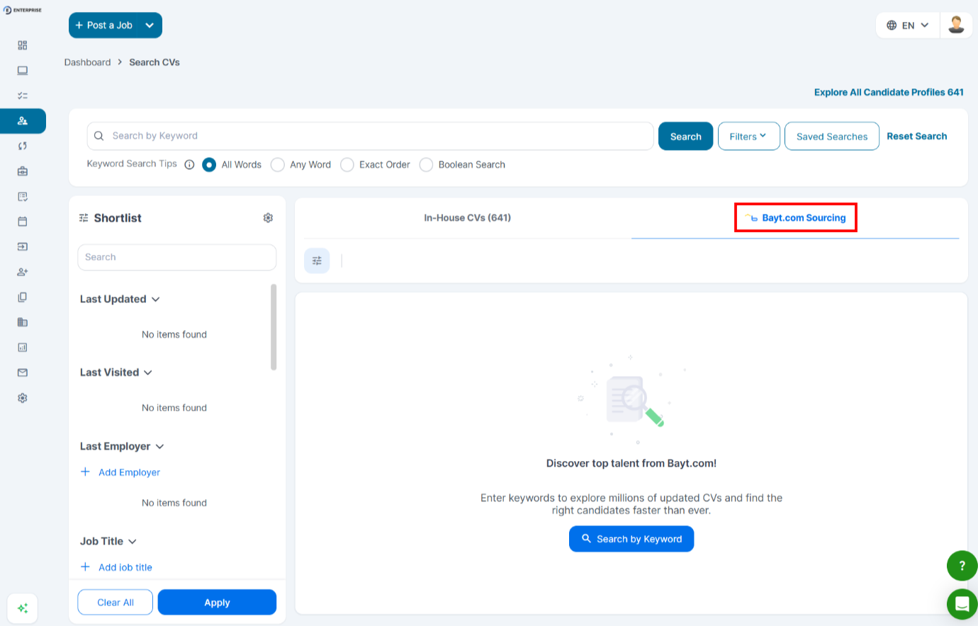 💡 Tip: Use Bayt Remote CV Search to proactively build talent pools before roles open. Use SANAD Sourcing to supplement the applicant pipeline on a live role. They are designed to work together. |